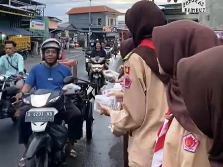 Aksi berbagi tersebut menjadi kegiatan sosial yang dilakukan anggota Pramuka SMK YPM 2 Taman selama bulan Ramadan. Para siswa turun langsung ke jalan untuk membagikan takjil kepada masyarakat yang sedang dalam perjalanan menjelang waktu berbuka.