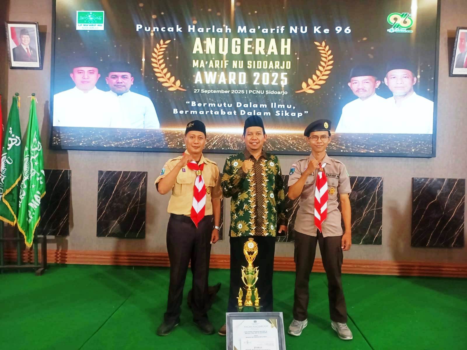 Jejak Pramuka – Satuan Komunitas (Sako) Pandu Ma’arif NU Sukodono berhasil menorehkan prestasi membanggakan dengan meraih Juara 1 kategori Organisasi Sako Pandu Ma’arif NU Terbaik pada ajang Anugerah Ma’arif NU Award 2025. Penghargaan ini diumumkan bertepatan dengan puncak peringatan Hari Lahir (Harlah) ke-96 Lembaga Pendidikan Ma’arif NU yang digelar di Kantor PCNU Sidoarjo, Sabtu (27/9).