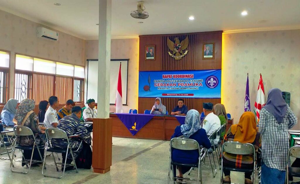 Jejak Pramuka – Kwartir Cabang Gerakan Pramuka Banyuwangi bersiap menggelar Musyawarah Cabang (Muscab) Tahun 2025 sebagai momentum pergantian estafet kepemimpinan organisasi. Rapat koordinasi panitia Muscab digelar pada Rabu (14/5/2025) di Aula Gedung Pramuka Banyuwangi sebagai langkah awal persiapan.