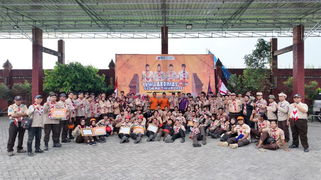 Jejak Pramuka – Temu Abdimas 2025 yang digelar oleh Kwartir Daerah (Kwarda) Gerakan Pramuka Jawa Timur di Bumi Perkemahan Wisata Desa Bumi Mulyo Jati Mojopahit, Kabupaten Mojokerto, resmi ditutup pada Senin (04/08/2025).